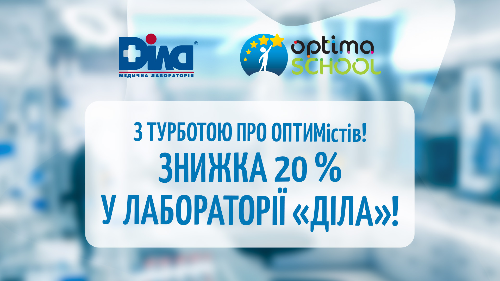 Учні школи «Оптіма» отримали додатковий бонус — знижку 20 % на послуги медичної лабораторії «ДІЛА». Завдяки партнерству з лідером у сфері медичних досліджень турбота про здоров’я стала ще доступнішою.