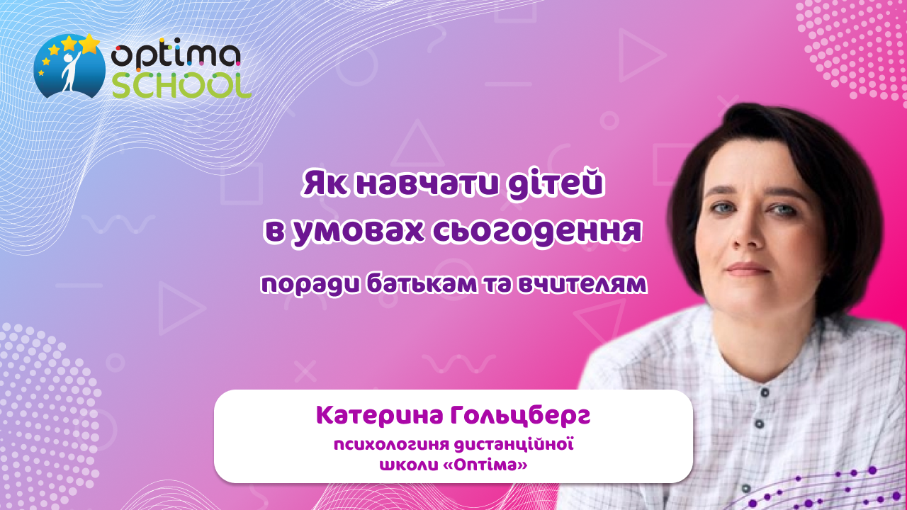 Психологиня дистанційної школи «Оптіма», президентка Професійної асоціації дитячих аналітичних психологів взяла участь у записі корисних і надзвичайно актуальних відео з порадами батькам і вчителям. Вона послідовно розкриває труднощі, з якими стикаються сучасні школярі, і розповідає, як перетворити їх на можливості. Відверто і без купюр – у відеороликах, створених спільно з ЮНІСЕФ. Рекомендовано до перегляду першою та найбільшою дистанційною школою «Оптіма».