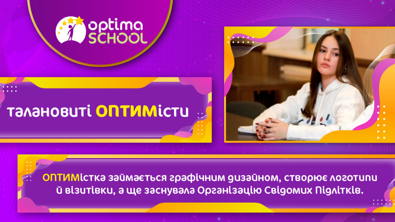 Ми неймовірно пишаємося нашою ученицею, її громадською позицією та активною діяльністю в різних сферах життя. «Оптіма» допомагає не тільки здобувати якісні знання, а й знаходити час на розвиток та особистісне зростання!