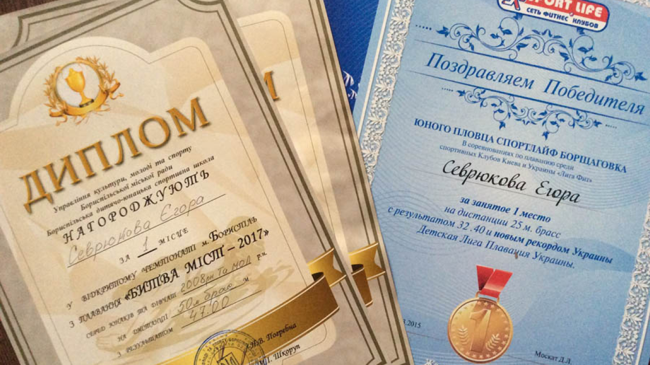 Рекордсмен України з плавання брасом у віковій категорії до 6 років, а у 8 років наш обдарований ОПТИМіст є володарем І юнацького розряду з плавання.