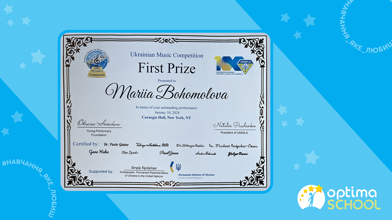 Вітаємо Марію з її досягненнями, бажаємо нових перемог і гучних оплесків на світових сценах! «Оптіма» пишається своїми талановитими учнями!