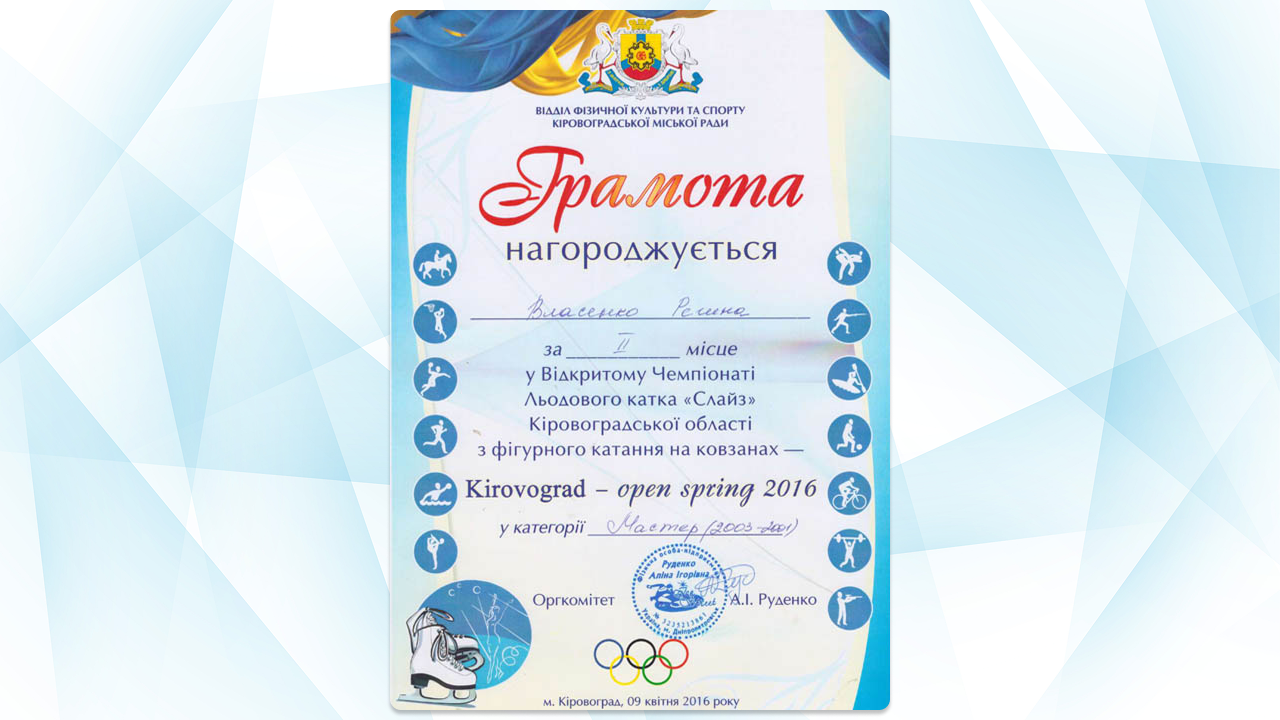 Грамоти та дипломи з фігурного катання Регіни: