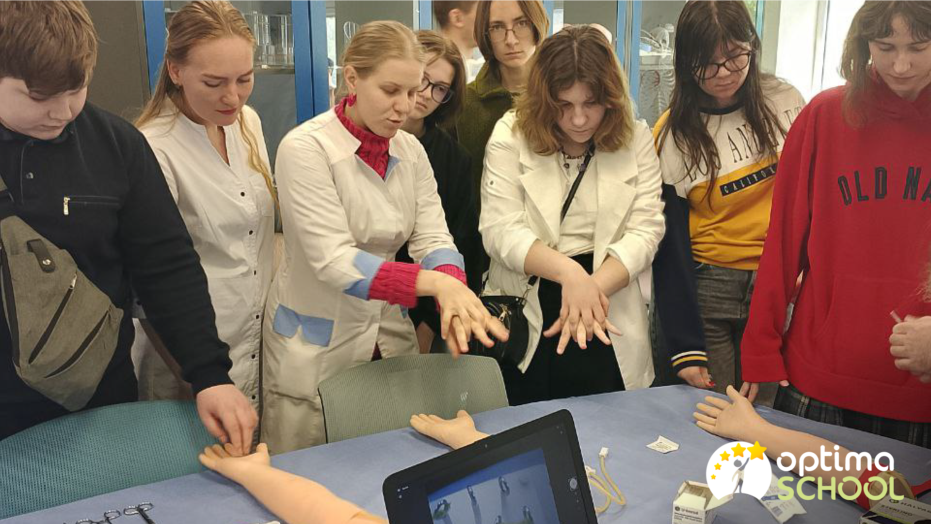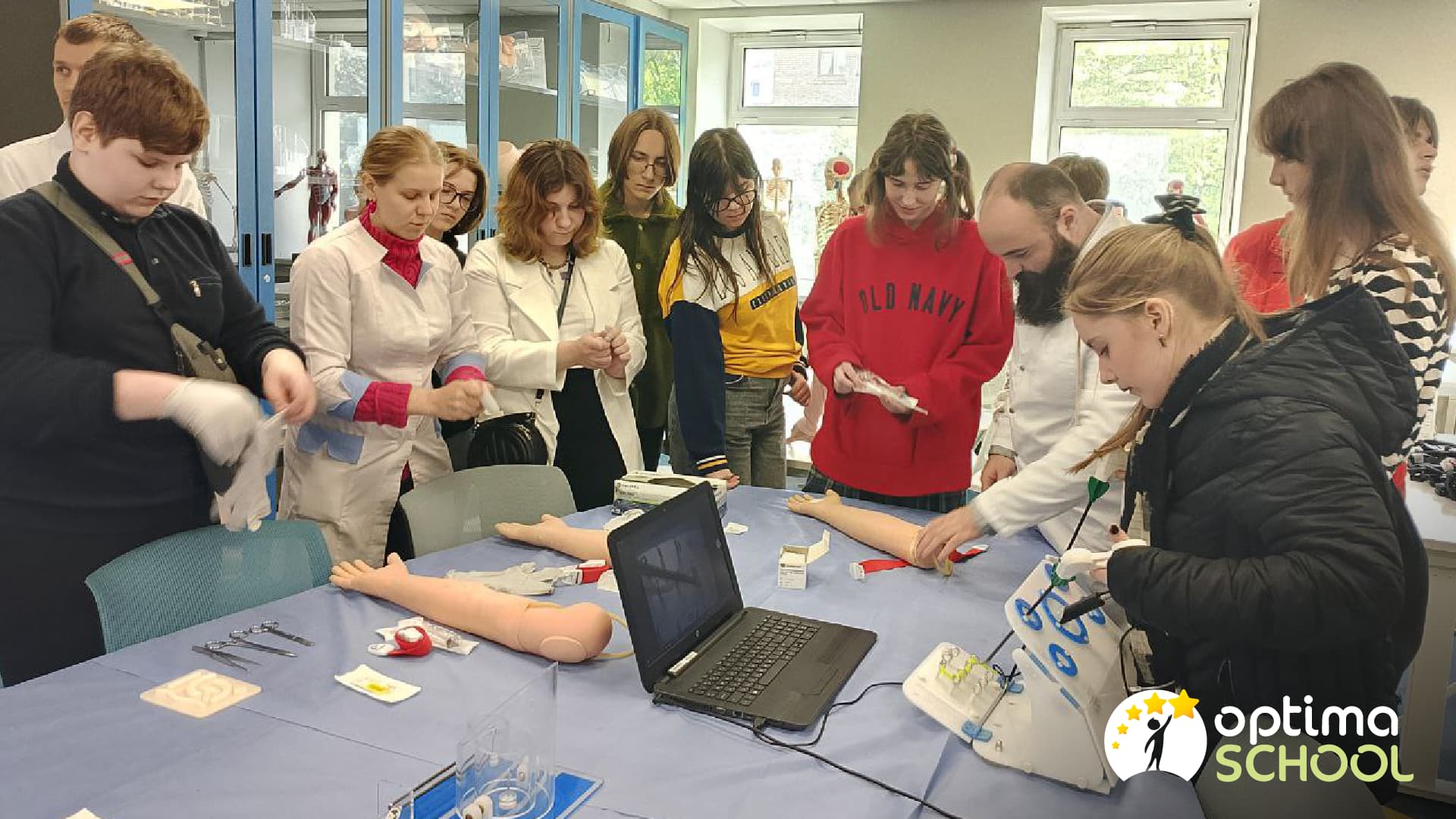 Під час візиту ОПТИМісти ознайомилися з університетом, відвідали музей і сучасну бібліотеку, а також взяли участь у тренінгу з тактичної й невідкладної медицини. На практиці учні дізналися, як працюють медики в реальних умовах, вчилися накладати джгут, опановували етапи надання першої допомоги та навіть спробували накласти шов.